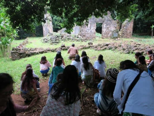 カメハメハ三世の遺跡の前でUncle NathanがOliとKahikoを…