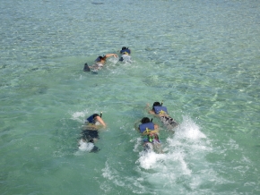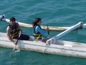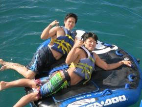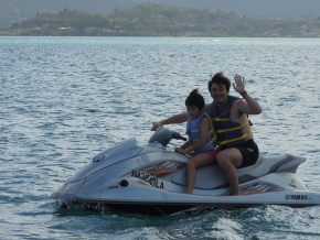 マリーンスポーツ8種目:$110(ジェットスキー・ウィンドサーフィン・バナナボート・バンパーチューブ・シュノーケル・ハワイアンカヌー・水上バレーボール、ボートに乗って海がめ探し。ランチ&送迎付き)