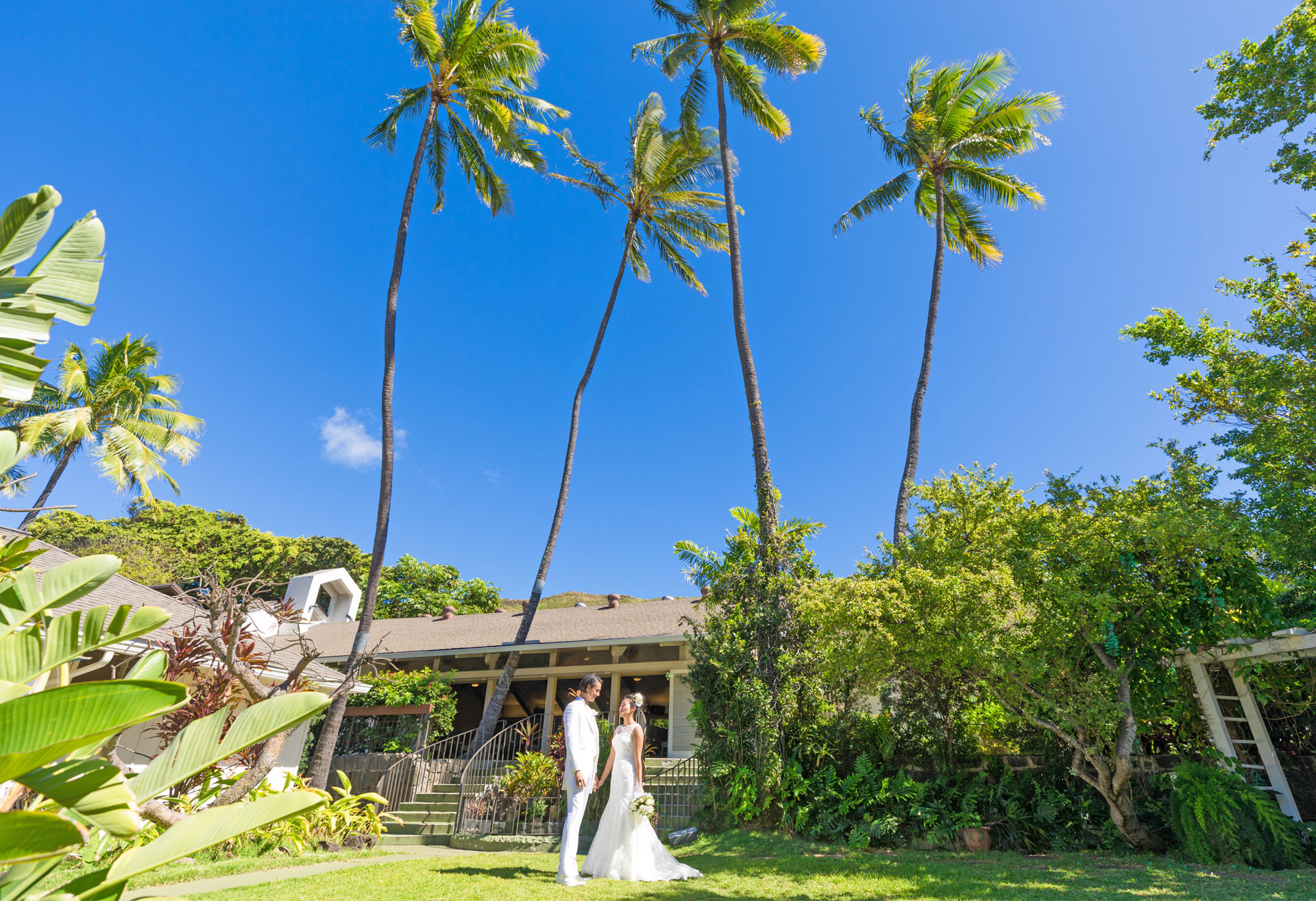 優雅なハワイアンミュージックを聞きながら青空の下での結婚式…まさにハワイ随一のカップルですね!!